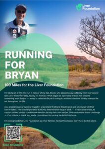 Jason’s fund raising page – https://www.mycause.com.au/page/388321/running-for-bryan-100-miles-for-the-liver-foundation